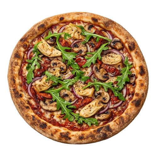 Artisokka, aurinkokuivattu tomaatti, herkkusieni, punasipuli, rucola